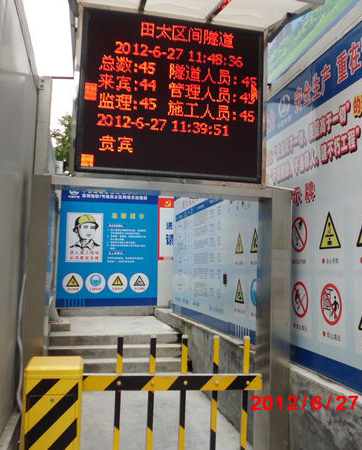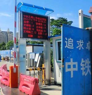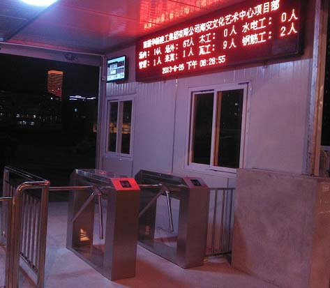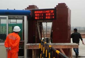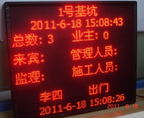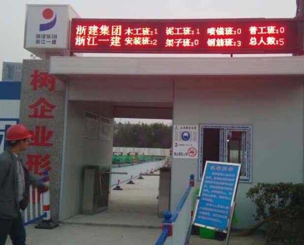 건설현장 출입구 외부 LED 전광판을 계수하는 직원 수 및 시스템 프로그램