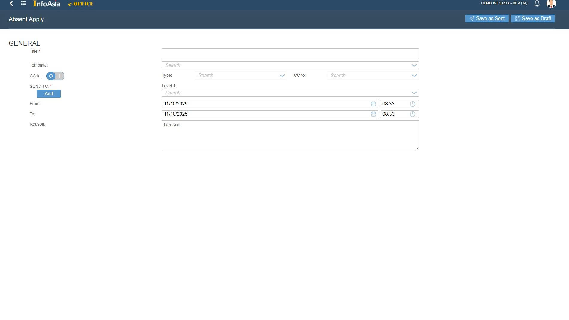 Với giao diện hiện đại, thân thiện và khả năng tùy chỉnh cao, InfoAsia e-Office là công cụ không thể thiếu cho các doanh nghiệp mong muốn: Tự động hóa quy trình nhân sự, kiểm soát dữ liệu minh bạch và tối ưu chi phí vận hành.